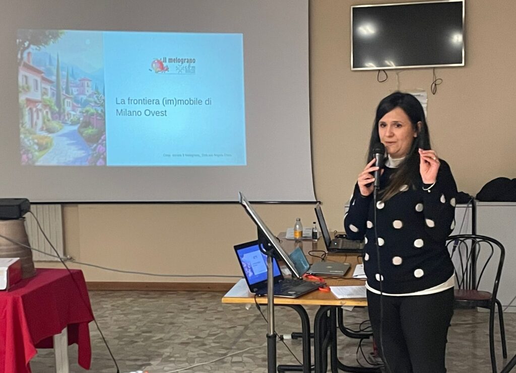 È dentro questa tensione tra mobilità e abitare che si colloca l’esperienza della Cooperativa sociale Il Melograno, e in particolare quella del Borgo sostenibile di Figino, che rappresenta per noi un caso centrale, una sorta di laboratorio vivente di welfare di prossimità. Lo abbiamo raccontato a Milano il 28 febbraio 2026 partecipando alla giornata di studi antropologici “La frontiera (im)mobile di Milano Ovest”, organizzata nell’ambito del World Anthropology Day 2026, presso il Salone “Claudio Acerbi” di Quinto Romano con la partecipazione di Comune di Milano, Università Bicocca, Italia Nostra, e di diversi enti del Terzo settore operativi sul territorio oltre che a residenti e comitati di quartiere.