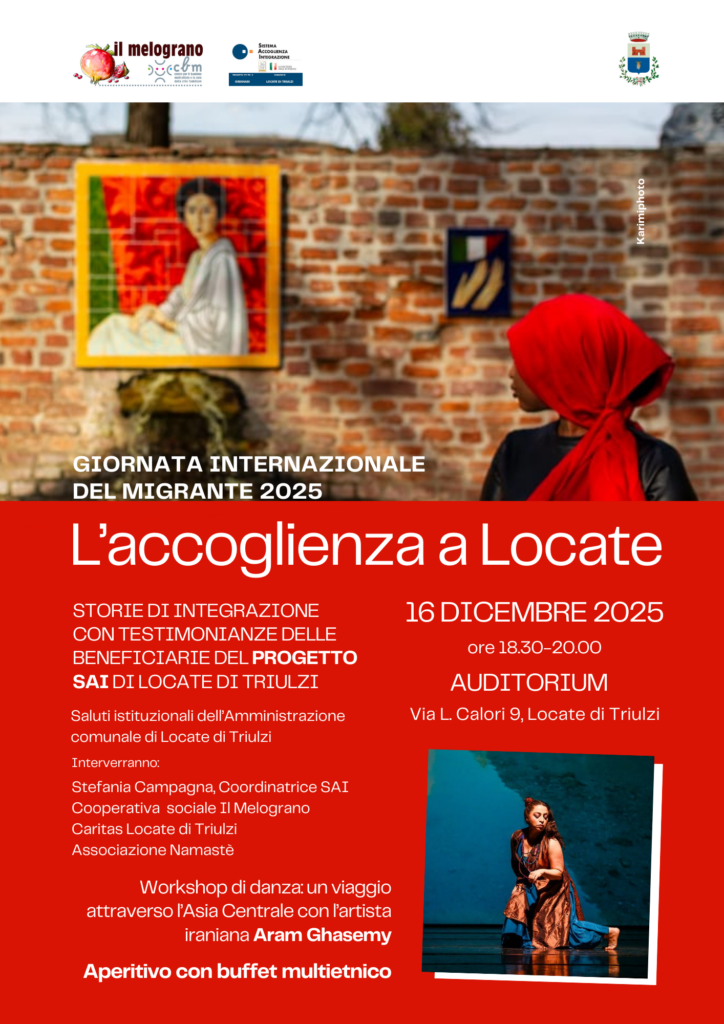 Il 16 dicembre 2025, dalle 18.30 alle 20.00, l’Auditorium di via L. Calori 9 a Locate di Triulzi ospiterà un appuntamento dedicato alla condivisione dei percorsi e delle testimonianze delle beneficiarie del progetto SAI di Locate di Triulzi, gestito dalla Cooperativa Il Melograno. L’iniziativa, organizzata in occasione della Giornata Internazionale del Migrante 2025, nasce dalla volontà di raccontare alla cittadinanza il valore dell’integrazione sul territorio attraverso esperienze vissute, parole e momenti di incontro.