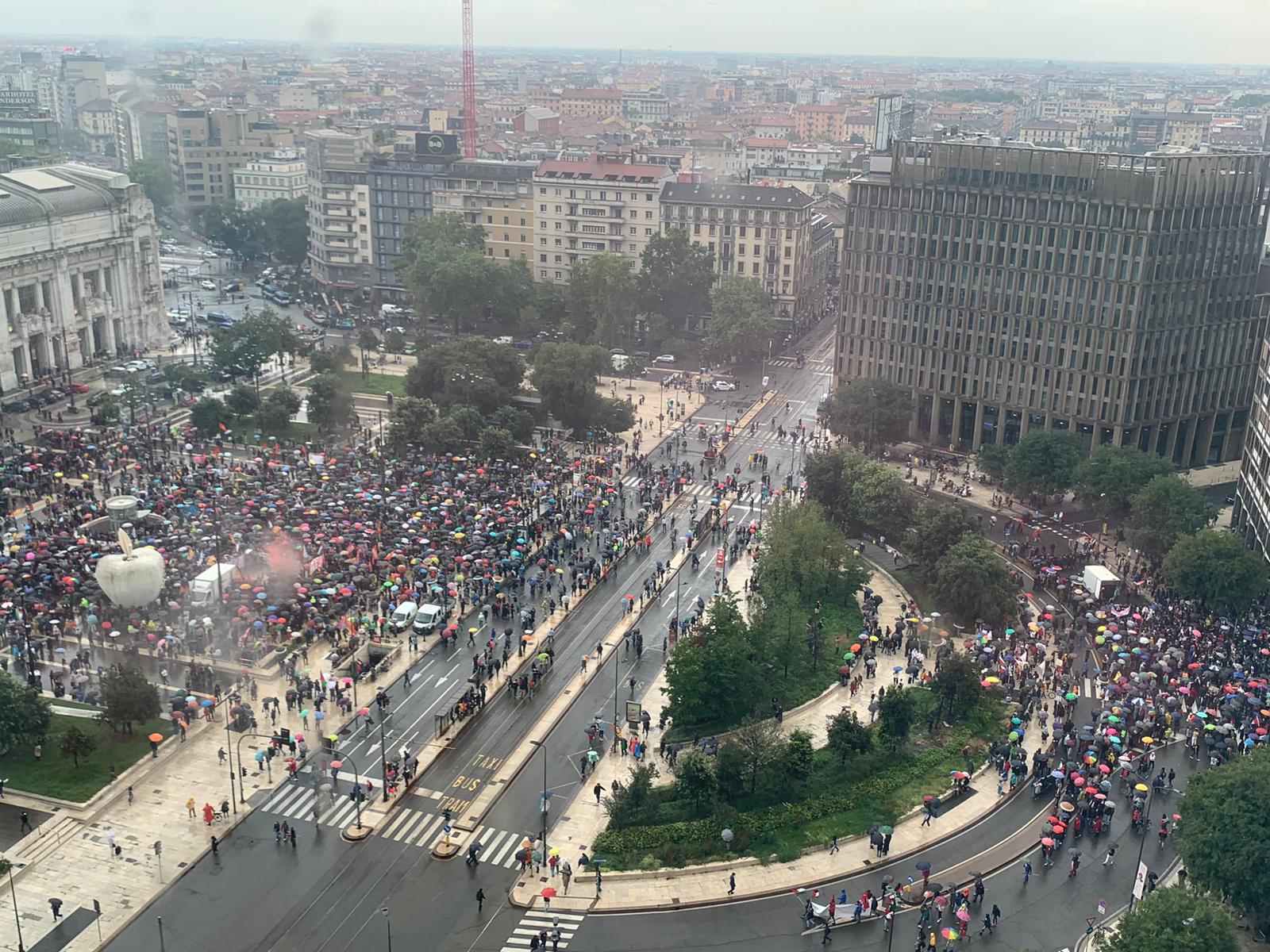 A Milano il corteo è partito da Piazzale Cadorna ed è arrivato fino a piazza Duca d’Aosta, davanti alla Stazione Centrale. Migliaia di persone, soprattutto studenti e lavoratori della logistica, hanno percorso viali e bastioni, fermandosi davanti a sedi bancarie e istituzionali. In piazza Duca d’Aosta i momenti più tesi: tentativi di entrare in stazione, cariche e lacrimogeni.