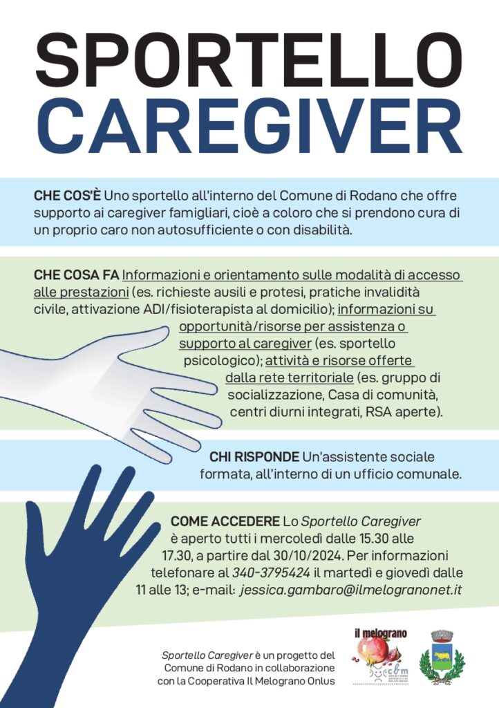 Il progetto Sportello Caregiver del Comune di Rodano, nel Milanese, realizzato in collaborazione con la Cooperativa sociale Il Melograno, è stato avviato nell’ottobre 2024 con l’obiettivo di sostenere chi ogni giorno si prende cura di una persona vicina svolgendo un compito fondamentale per la famiglia e in generale per la collettività.